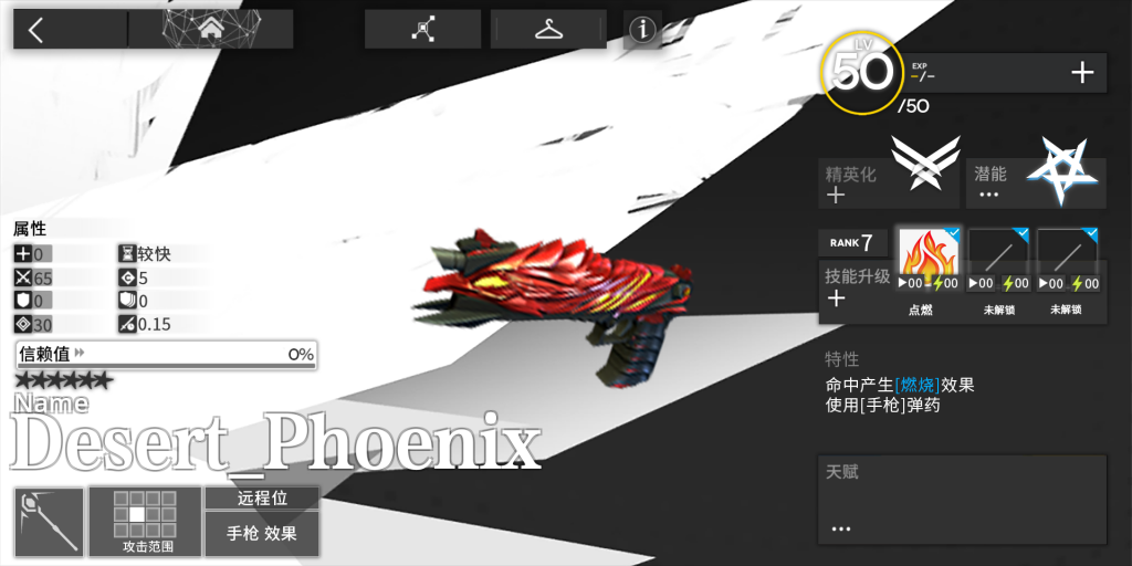 一根火力不强的大口径手枪,命中目标造成持续燃烧效果